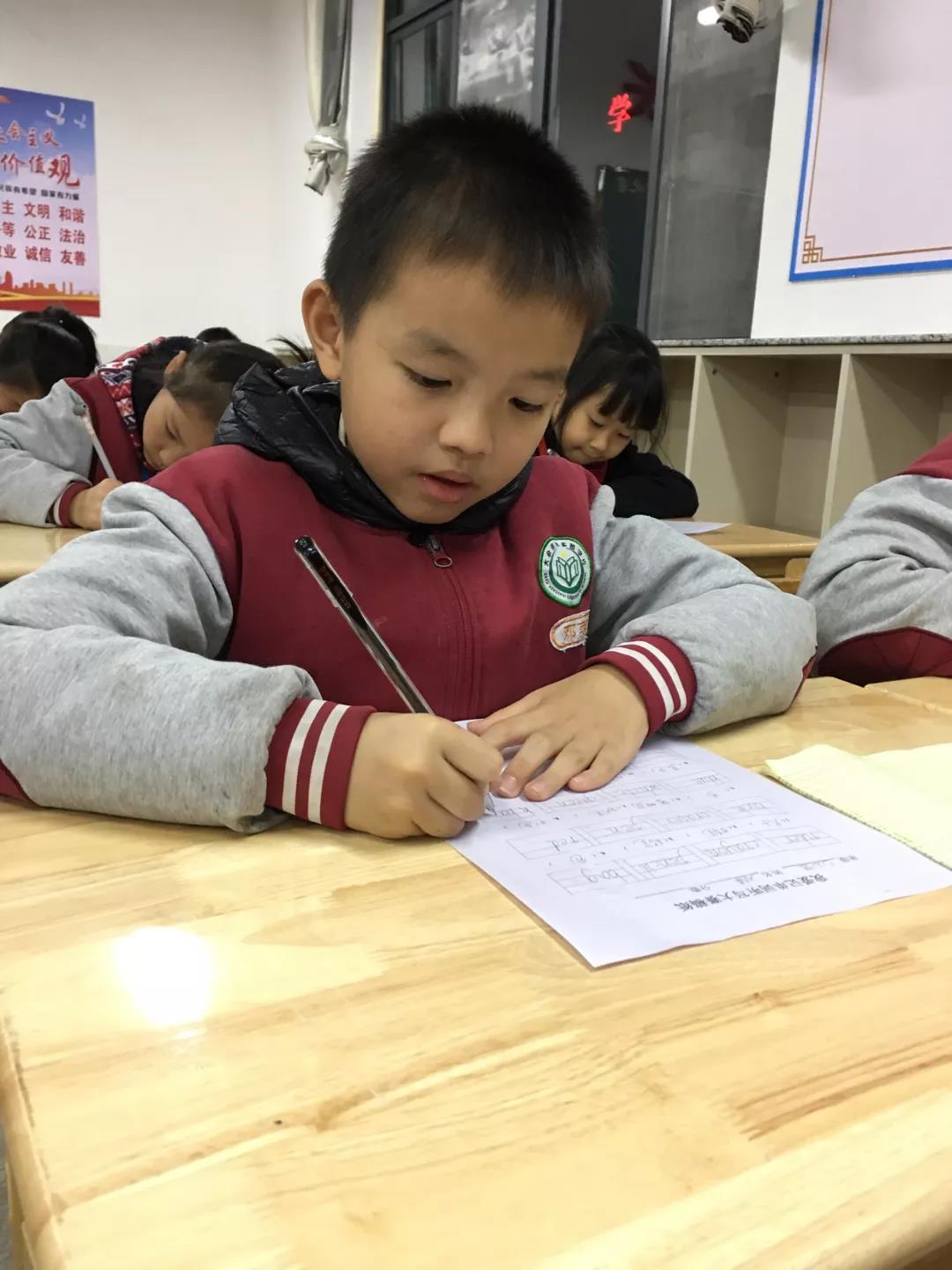比賽開始了,諾大的書寫現(xiàn)場只有唰唰的寫字聲, 一個(gè)個(gè)干凈、整潔、漂亮的單詞在孩子們的指尖跳躍。