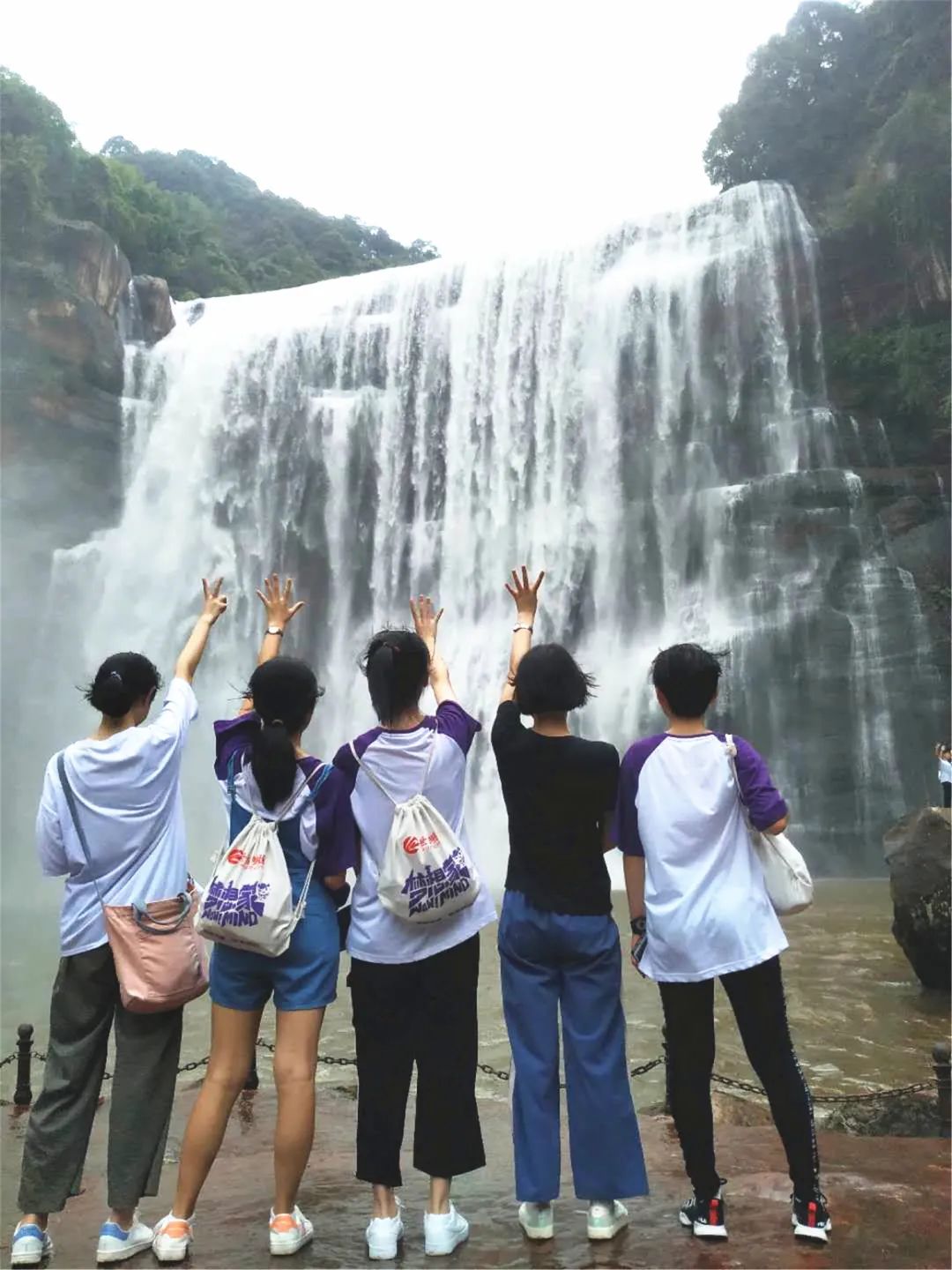 從石間縫隙中穿過,從山間小路上踏過,未見其景先聞其身,隆隆的聲響令人激動不已。轉過一個角落,眼前驟然明亮,萬千白絲傾瀉而下,編織成白綾,似從天上拋下。白煙帶著飛濺的水珠撲面而來,宛如身體內不斷沸騰的血液,回想幾天前走過的丙安古鎮,參觀過的紅軍物品陳列館,不禁將兩者相聯。赤水瀑布傾瀉而下的是水流,是力量,是精神;嘶吼出的是氣勢,是心聲。悄悄的我走了,正如我悄悄的來,這一趟,我受益匪淺。