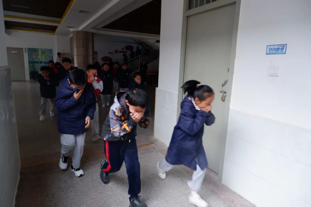 上午十點整,隨著警報聲的響起,消防演練正式開始。在領導的指揮下,各工作小組按照預案迅速到達指定位置,開始引導學生用濕毛巾捂住口鼻,從教室迅速撤離到操場集合。隨后,各班清點人數,逐級匯報,確保所有學生都安全撤離到了操場。