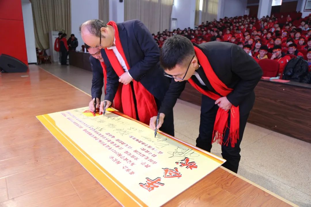 隨后,全體高三教師在張朝老師的帶領(lǐng)下簽軍令狀并宣誓。不負使命,認真工作,甘為人梯,培育棟梁,關(guān)愛學生,創(chuàng)造輝煌,千淘萬漉雖辛苦,吹盡狂沙始到金,這就是高三教師的不變承諾!